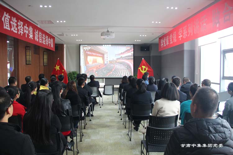 10月18日上午9時(shí),中國(guó)共產(chǎn)黨第十九次全國(guó)代表大會(huì)在北京隆重開(kāi)幕。甘肅中集實(shí)業(yè)集團(tuán)有限公司黨委組織集團(tuán)公司黨委下屬五個(gè)黨支部全體黨員、入黨積極分子及十余家分公司中高層管理人員收看開(kāi)幕實(shí)況直播。