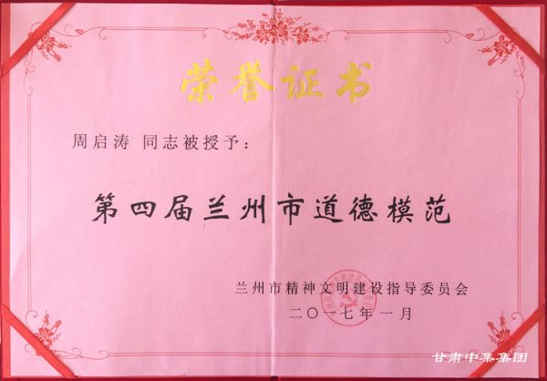 甘肅中集實業(yè)集團(tuán)有限公司董事長周啟濤喜獲“第四屆蘭州市道德模范”榮譽稱號
