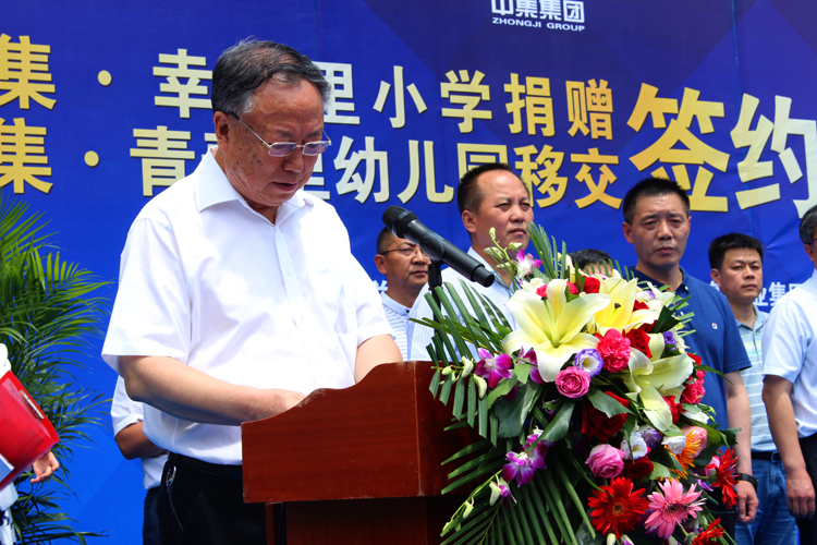 2017年6月22日下午14時,甘肅中集實(shí)業(yè)集團(tuán)有限公司通過甘肅省慈善總會,向蘭州市安寧區(qū)人民政府捐贈價(jià)值1.02億元中集•幸福里小學(xué)暨中集•青春里配建幼兒園移交儀式在中集•幸福里小學(xué)操場隆重舉行。甘肅省原人大常委會副主任、甘肅省慈善總會會長朱志良,甘肅省原民政廳黨組書記、廳長、甘肅省慈善總會常務(wù)副會長梁國安,甘肅省教育廳副廳長趙  凱,蘭州市人大常委會副主任孫曉鋼,蘭州市人民政府副秘書長淡漢榮,安寧區(qū)區(qū)委書記王  方及安寧區(qū)區(qū)委副書記、區(qū)長雒澤民攜安寧區(qū)委、區(qū)人大、區(qū)政府、區(qū)政協(xié)四大班子領(lǐng)導(dǎo),蘭州市教育局、蘭州市國土局、蘭州市規(guī)劃局、蘭州市房產(chǎn)局相關(guān)領(lǐng)導(dǎo)出席捐贈儀式,甘肅中集實(shí)業(yè)集團(tuán)有限公司黨委書記、董事長周啟濤代表公司完成與安寧區(qū)人民政府捐贈及移交簽約。