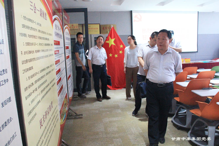 2018年6月20日下午,甘肅省委組織部組織三處處長劉世鵬、省民政廳社會組織黨建處處長靳生喜、省工商局非公有制經(jīng)濟(jì)組織黨建處副處長周銀武、省民政廳社會組織黨建處主任科員張  軍、省工商局非公有制經(jīng)濟(jì)組織黨建處副主任科員李曉亮一行在市委組織部部長、市非公和社會組織黨工委書記、市考核辦主任宋書明、市委組員辦副主任劉佃兵、市工商局副局長李繼軍、市民政局副局長杜文艷、市委組織部非公和社會組織黨建處處長吳磊、市委組織部非公和社會組織黨建處主任科員徐小勇陪同下蒞臨集團(tuán)公司調(diào)研指導(dǎo)黨建工作。